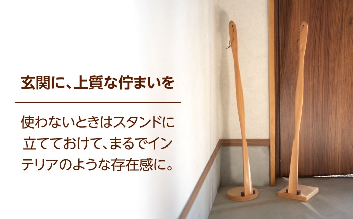 屈まず使えるロングサイズ。美しく使いやすく。使わないときはスタンドに立てるだけ。 【選べる2タイプ】天然木製 靴べら ロング 75cmスタンドセット 【ROKURO WORKS】 木製 靴ベラ セット [MDV014]