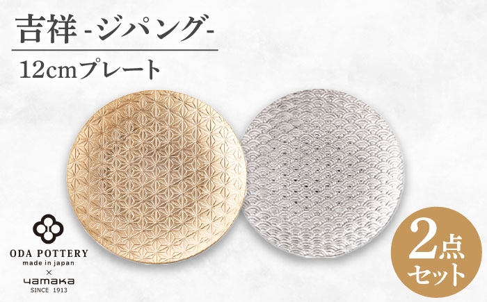 「黄金の国ジパング」を連想し、日本の伝統柄の彫刻に金やプラチナを装飾。 【美濃焼】吉祥~ジパング~ 12cm プレートペアセット 【山加商店】 YMK170-164 プレート ペア ギフト [MEB056]