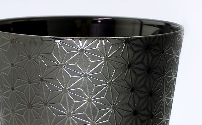 プラチナとラスターを掛け合わせたオリジナルの顔料で加色した黒く煌くロックカップは、今までにないクールな輝きを放っています。 生地は職人の卓越した技術により極限までうすく成形しており