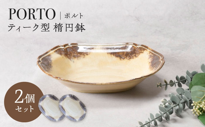 渋みのあるアンティーク調の器 【美濃焼】ポルト ティーク型 楕円鉢 2点セット【カネ定製陶】 [MEI241]