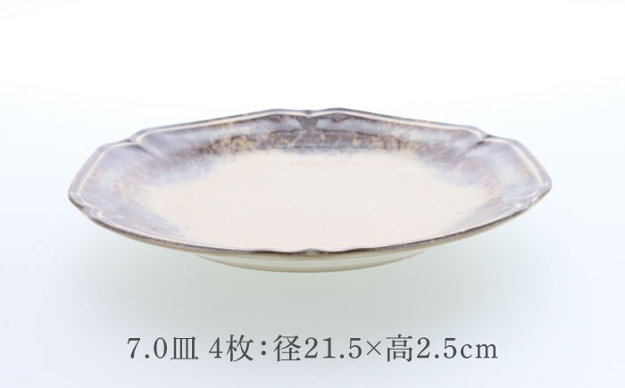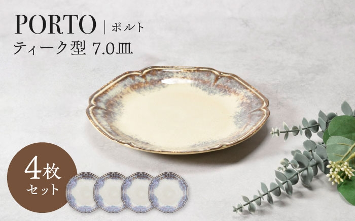 渋みのあるアンティーク調の器 【美濃焼】ポルト ティーク型 7.0皿 4点セット【カネ定製陶】 [MEI243]