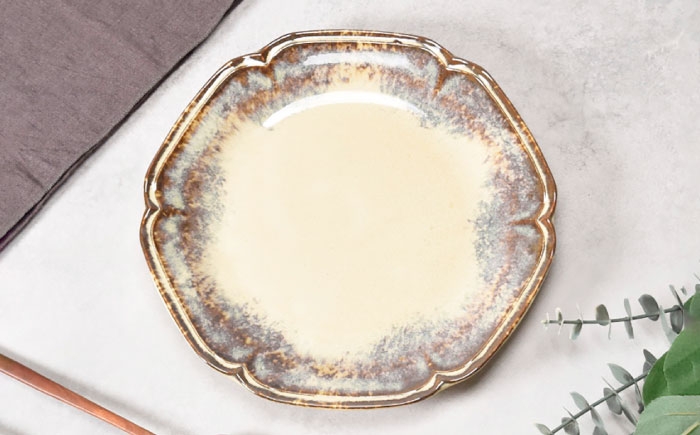 プレート 取り皿 中皿 デザートプレート つややか アンティーク ベージュ ファミリー 4枚 セット 花型
