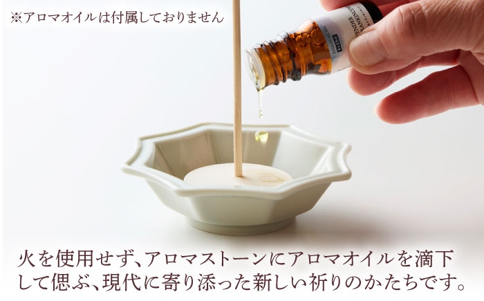 「和心香」は電熱や火を使用せず、付属のアロマストーンにアロマオイルを滴下して偲ぶ、現代の暮らしに寄り添いました、新しい祈りのかたちです。