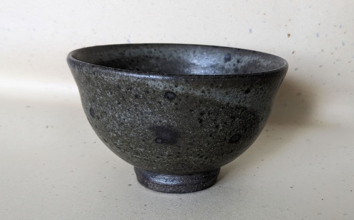 柿の蔕風の焼きです。竹節高台です。釉流れが面白い。