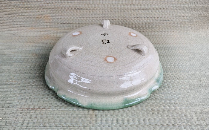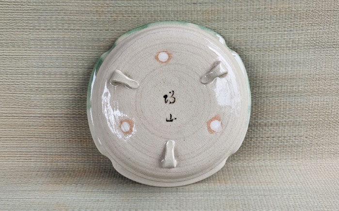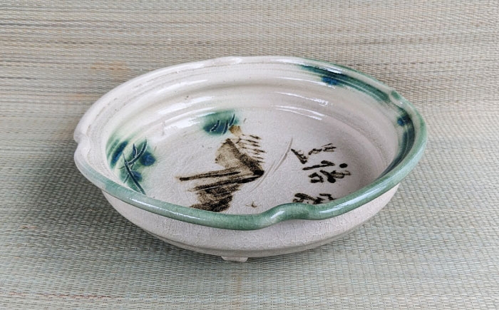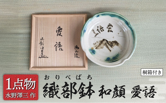 チョイス限定 どんな色の菓子も映える!日本を感じる!自分時間を楽しく豊かに!お茶会に! 【美濃焼】 織部鉢 銘 和顔[愛語] 3 清田保南老師揮毫 [一品物 手作り 織部焼] 【献上窯元 陽山窯 水野澤三作】 [MAA145]