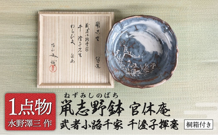 チョイス限定 日本を感じる!自分時間を楽しく豊かに!お茶会に! 【美濃焼】 鼡志野鉢 1 官休庵 武者小路千家 千澄子揮毫 [信長焼 手作り 一品物] 【献上窯元 陽山窯 無形文化財水野澤三作】 [MAA147]