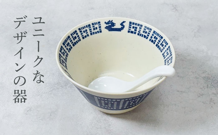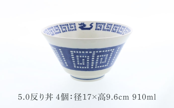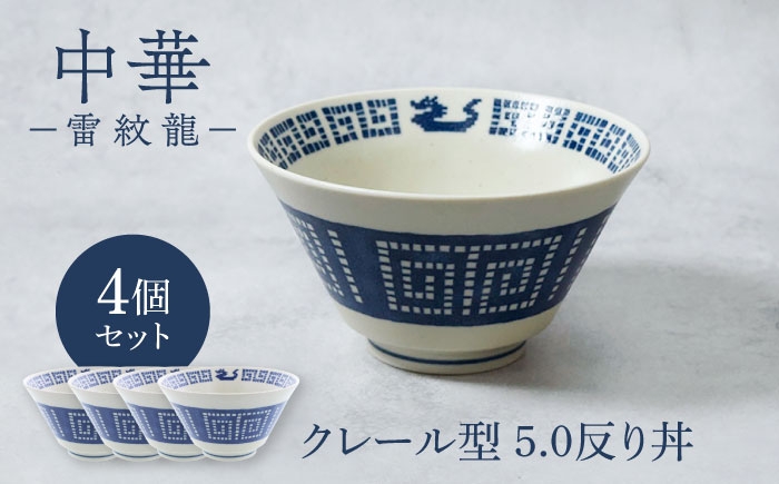 レトロかわいい中華食器 【美濃焼】中華 雷紋龍 クレール型 5.0反り丼 4点セット【カネ定製陶】 丼 中華食器 レトロ [MEI270]