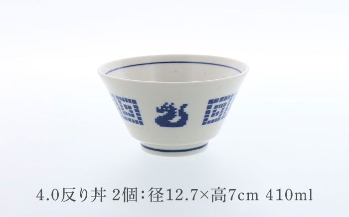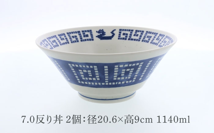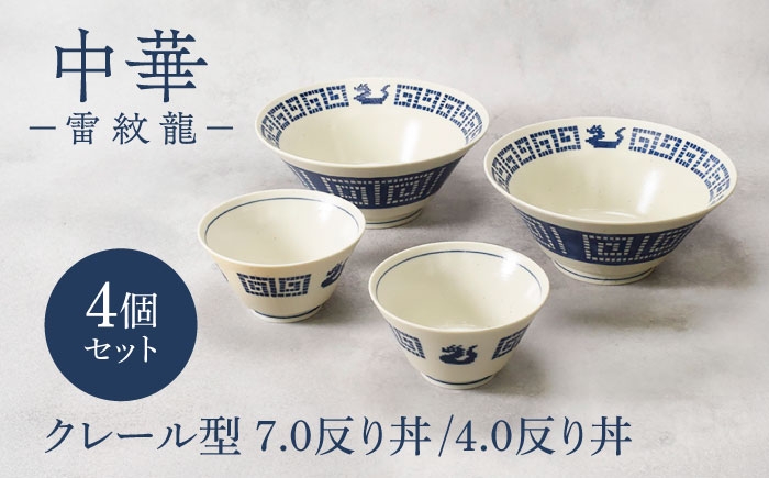 レトロかわいい中華食器 【美濃焼】中華 雷紋龍 クレール型 7.0反り丼 & 4.0反り丼 各2点 合計4点セット【カネ定製陶】 中華食器 丼 レトロ [MEI276]