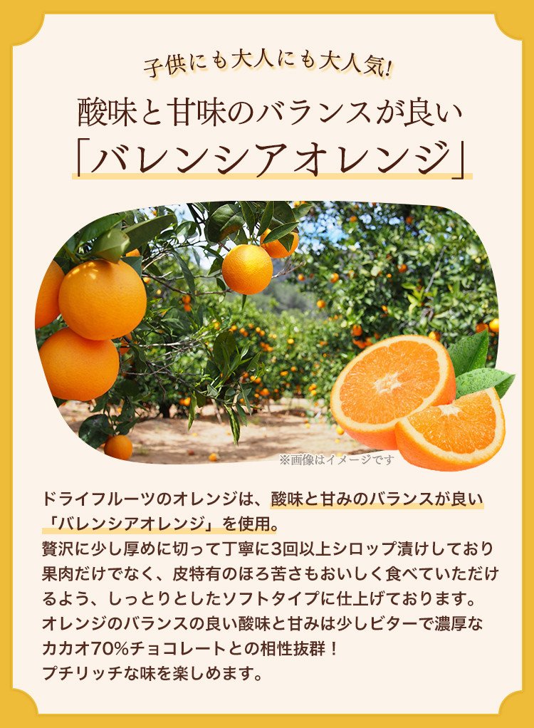 ● オレンジの一部にチョコレートが掛からない場合があります。