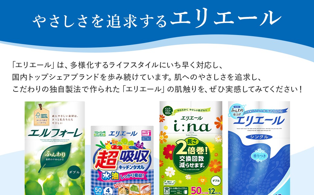 ふっくらやわらかな肌ざわり、エリエールのトイレットペーパー