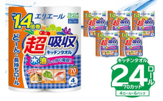 エリエール 超吸収 キッチンタオル 4R 70カット(4ロール×12パ…