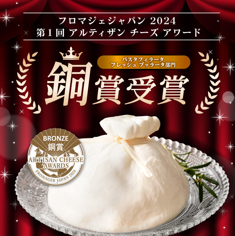 2014年から2年に1回開催される国産ナチュラルチーズのコンテストであるJapan Cheese Award 2022(チーズプロフェッショナル協会主催)では、当工房のリコッタチーズが金賞、ブッラータチーズが銀賞、モッツァレラチーズが銅賞を受賞しました。