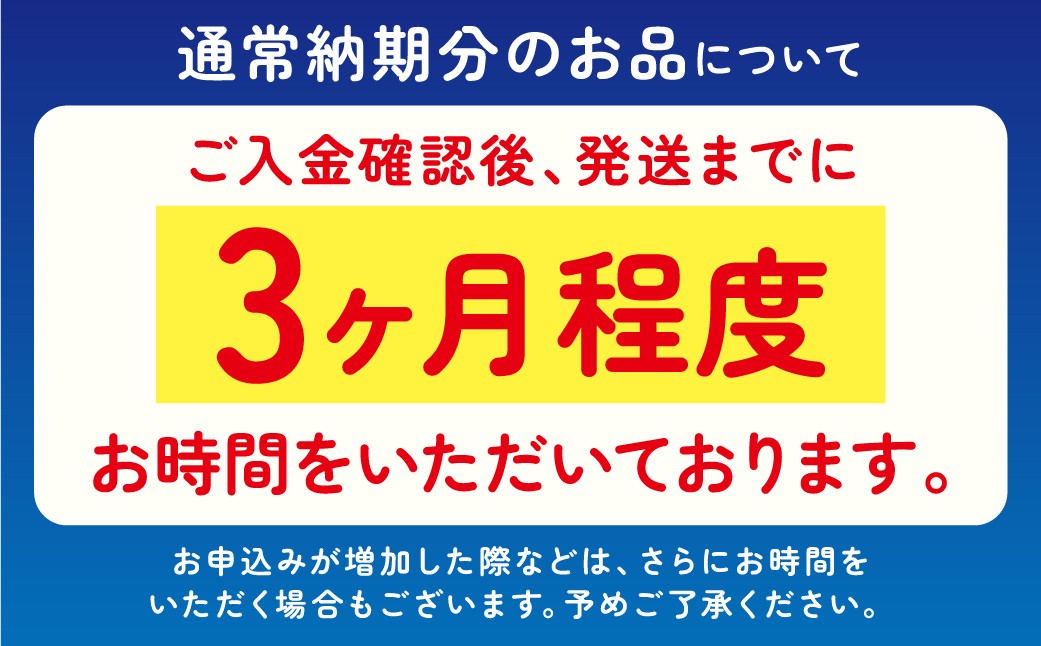 | 発送期日 | 入金確認後、原則として3か月以内に発送しますが、製造状況等によってはそれ以上かかる場合があります。 |