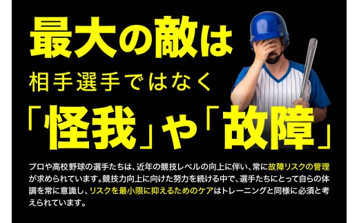 SPケアは、野球特有の継続的な瞬発負荷による体へのダメージに着目し、設計されました。