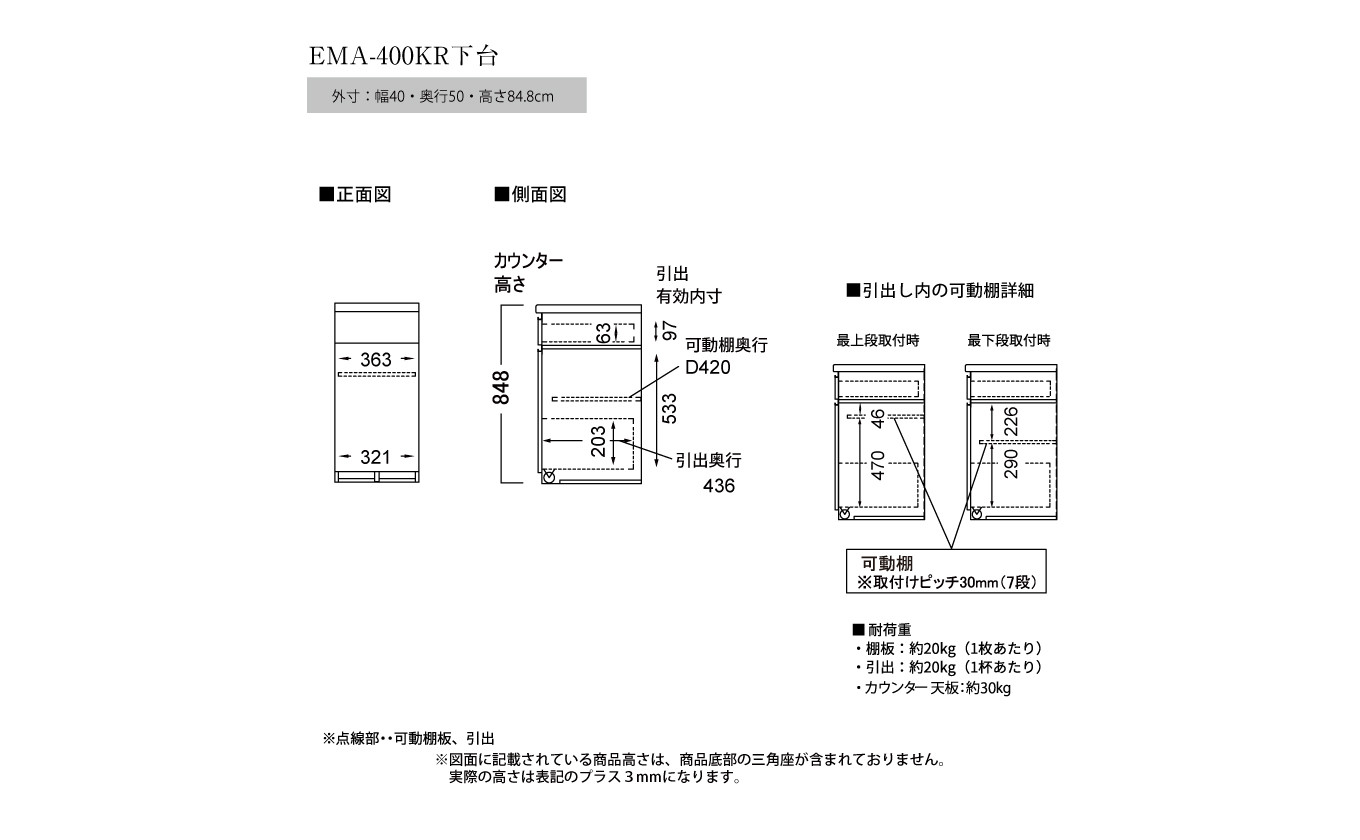 食器棚 カップボード 組立設置 EMA-400KRカウンター [No.550] / 家具 インテリア 岐阜県