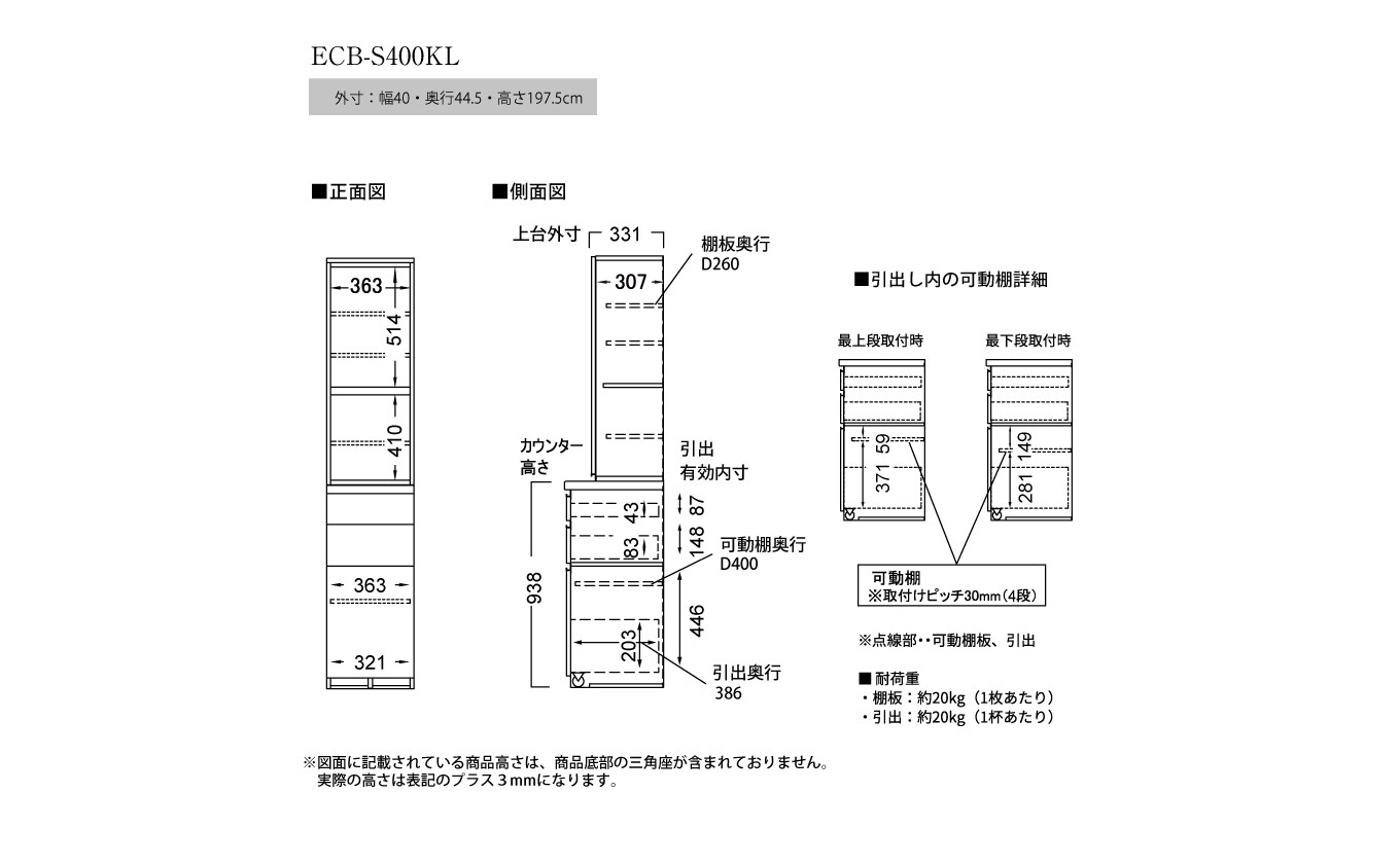食器棚 カップボード 組立設置 ECB-S400KL [No.568] / 家具 インテリア 岐阜県