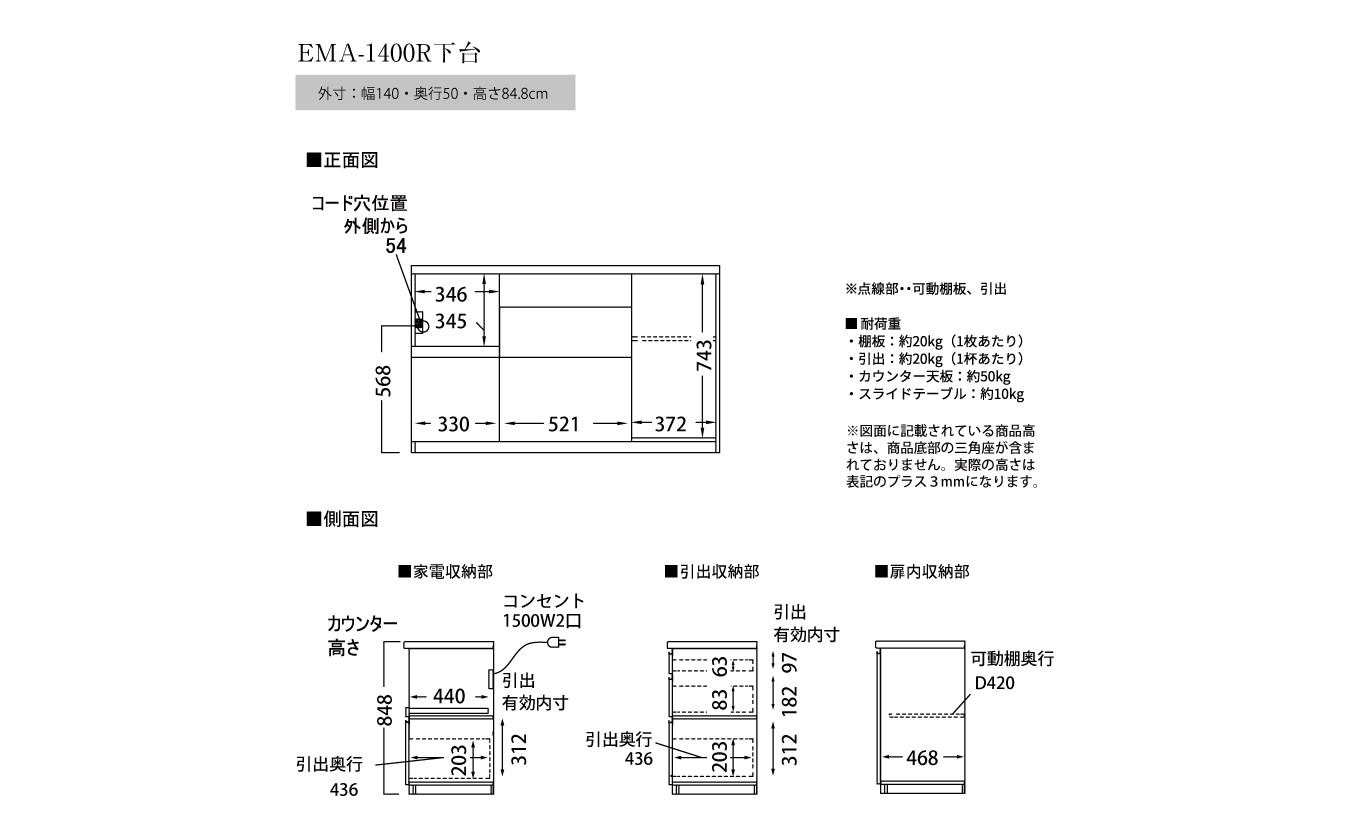 食器棚 カップボード 組立設置 EMA-1400Rカウンター [No.606] / 家具 インテリア 岐阜県