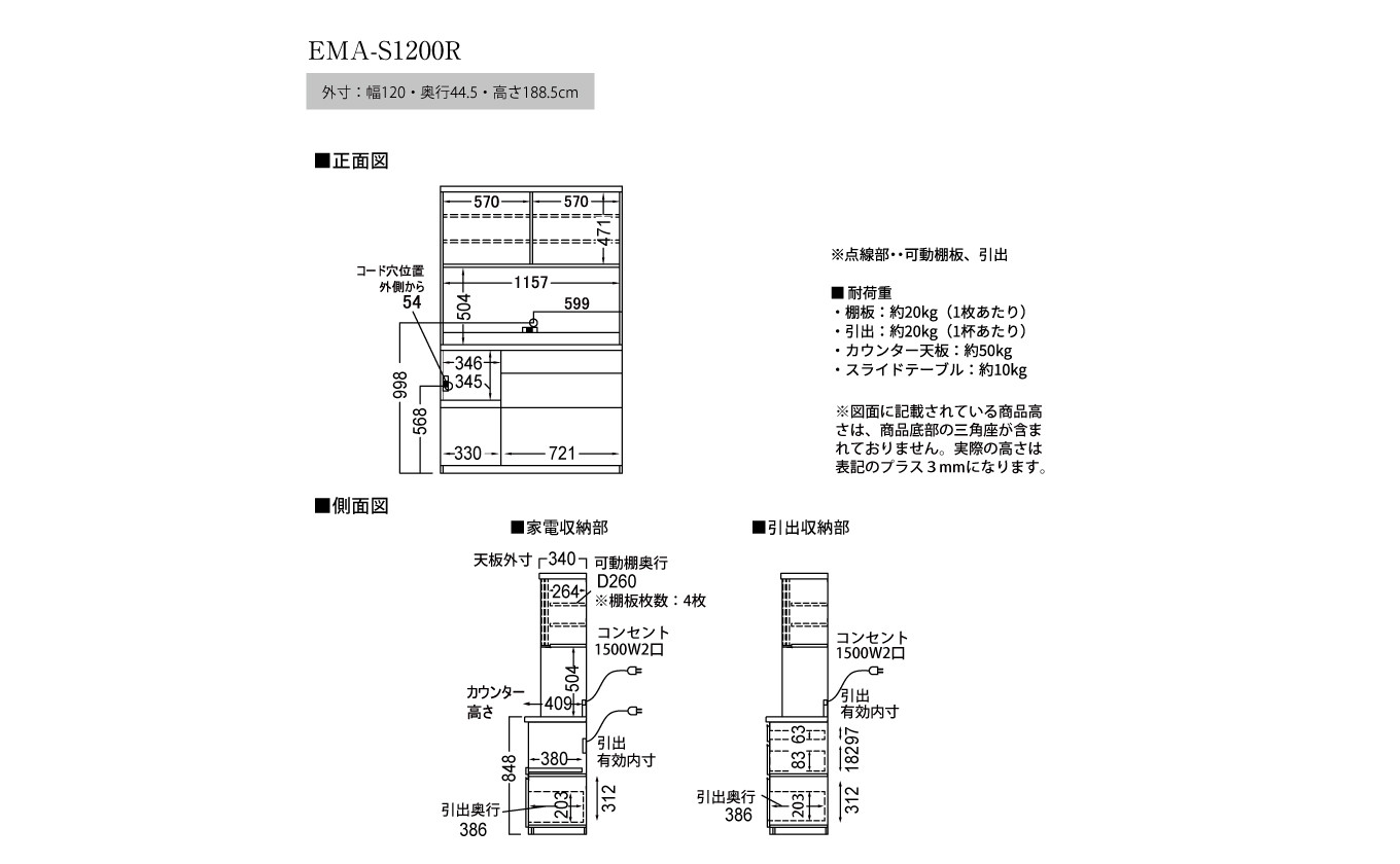 食器棚 カップボード 組立設置 EMA-S1200R [No.632] / 家具 インテリア 岐阜県