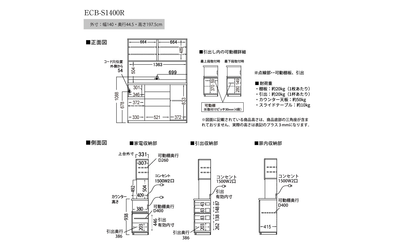 食器棚 カップボード 組立設置 ECB-S1400R [No.636] / 家具 インテリア 岐阜県