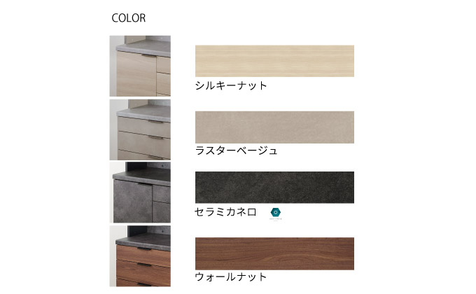 優れたデザイン性と必要な機能を備えたハイカウンタータイプの食器棚です。カラーはシルキーナット、ラスターベージュ、ウォールナット、セラミカネロ、の4色からお選びいただけます。