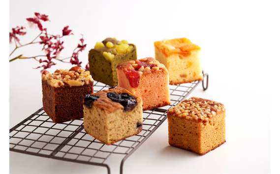 百花はちみつ・ストロベリーなど定番のほか、季節のフルーツを使ったバラエティ豊かなフレーバーが揃うキューブ型のパウンドケーキ。