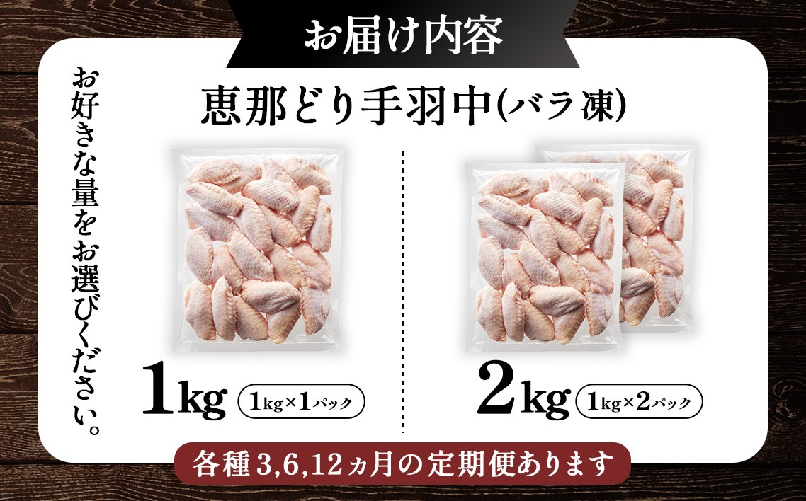 【選べる容量】恵那どり 手羽中 冷凍 バラ凍【1kg/2kg/3ヵ月/6ヵ月/12ヵ月定期便】 [No.V003] / 鶏 とり肉 肉 お肉 とり ブランド鶏 平飼い 国産 肉厚 美味しい 食べ応え 濃厚 コク 急速冷凍 バラ凍結 便利 手軽 量が選べる まとめ買い 大容量 岐阜県