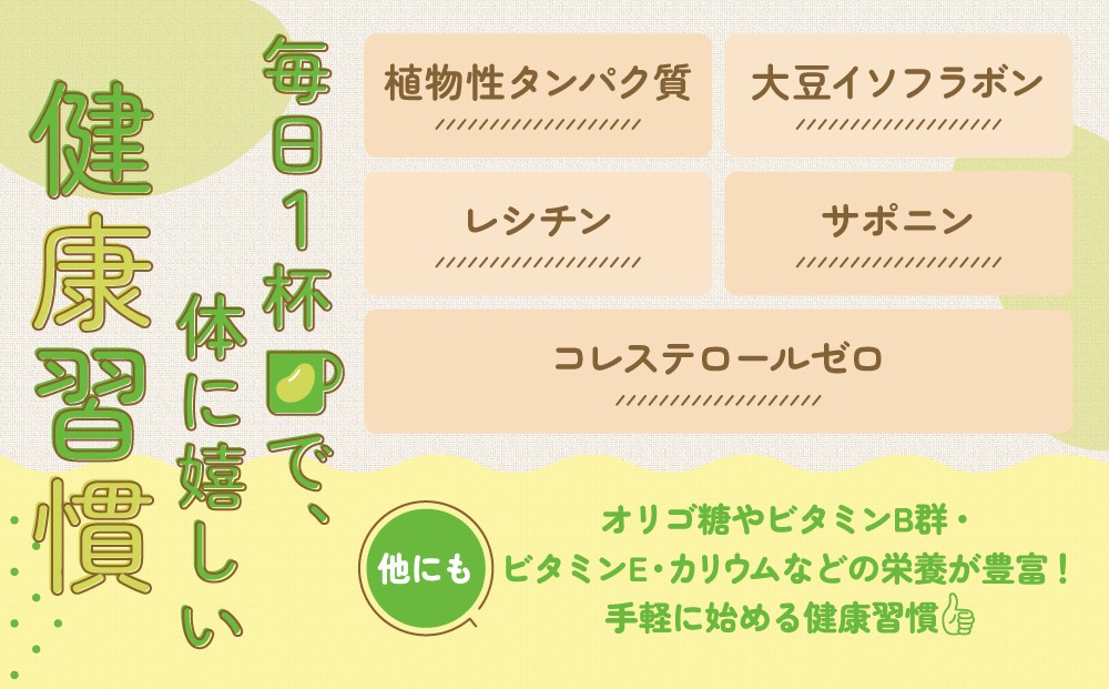 大豆イソフラボンや大豆レシチンなどを含むノンコレステロールのおいしい健康飲料です。