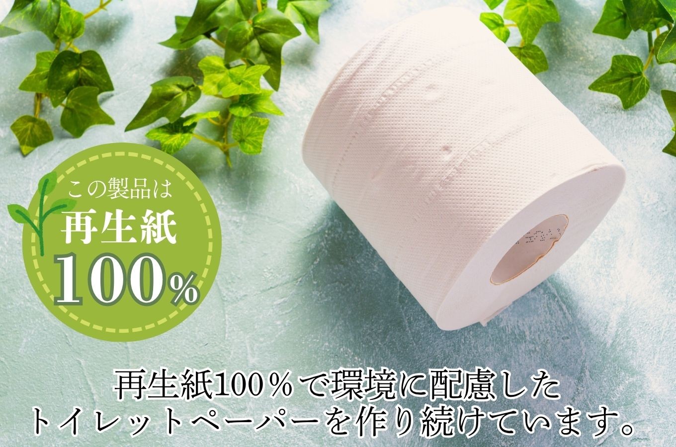 再生紙100%リサイクルトイレットペーパー。吸収力が高くシャワートイレに最適です