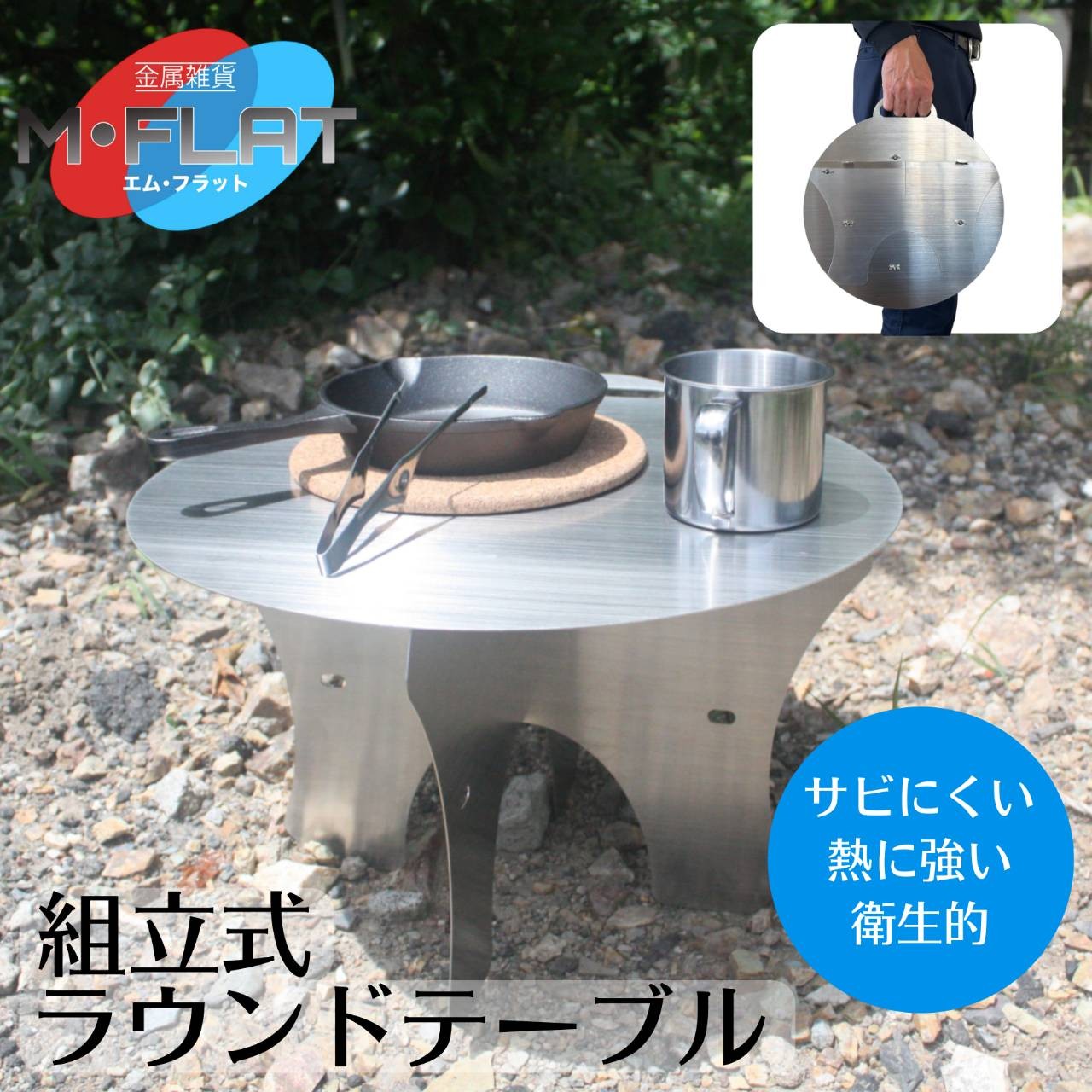 使いたい時、すぐそこにーどこでも組立て丸テーブル|テーブル アウトドア アウトドア用品 キャンプ バーベキュー BBQ イベント レジャー 夏休み おすすめ キャンプ用品 キャンプグッズ ステンレス 簡単 カンタン 日本製
