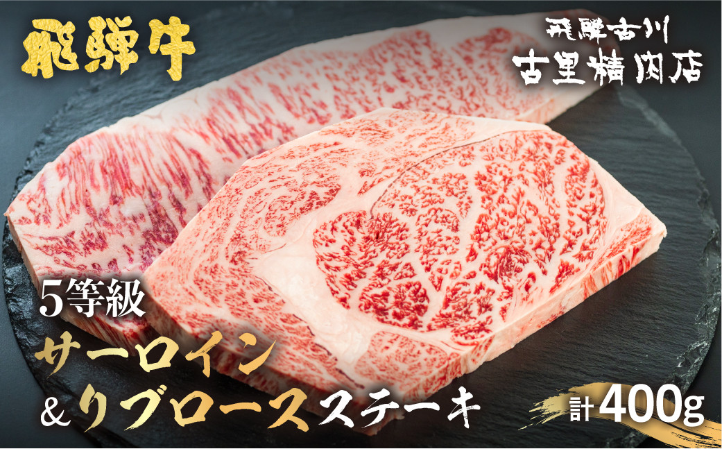 上質な飛騨牛の肉質をステーキで 飛騨牛 5等級 サーロインステーキ 200g リブロースステーキ 200g 計2枚400g 飛騨市推奨特産品 古里精肉店謹製 牛肉 和牛 ヒレ ステーキ 肉 お歳暮 ギフト 贈答 A5 a5 飛騨市