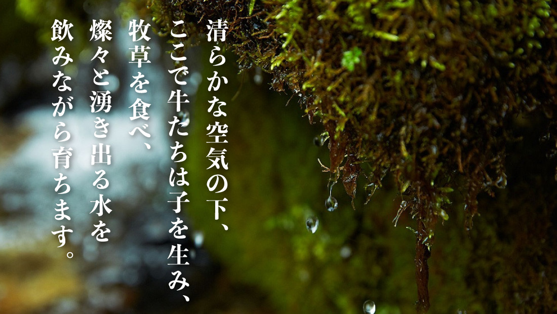清らかな空気の下、ここで牛たちは子を生み、牧草を食べ、燦々と湧き出る水を飲みながら育ちます。