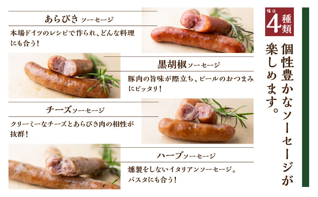 岐阜瑞浪ボーノポーク、オセアニア産の天然羊腸、薫り高い桜チップ使用。