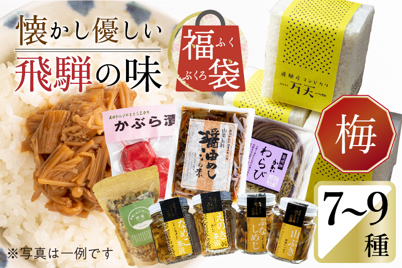 お楽しみ福袋!! 懐かし優しい飛騨の味 福袋【梅】7~9種類 詰め合わせ セット 米 山菜 缶詰 お惣菜 ご飯のお供 熨斗対応 熨斗掛け 内祝い 贈答用 ギフト