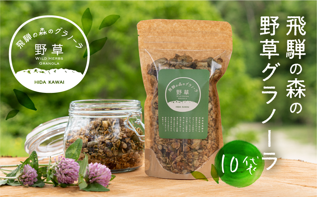 自然の栄養を詰め込んだグラノーラ! 飛騨産野草が入った飛騨の森の グラノーラ 10袋 オートミール 無添加 シリアル 自然派 ハトムギ
