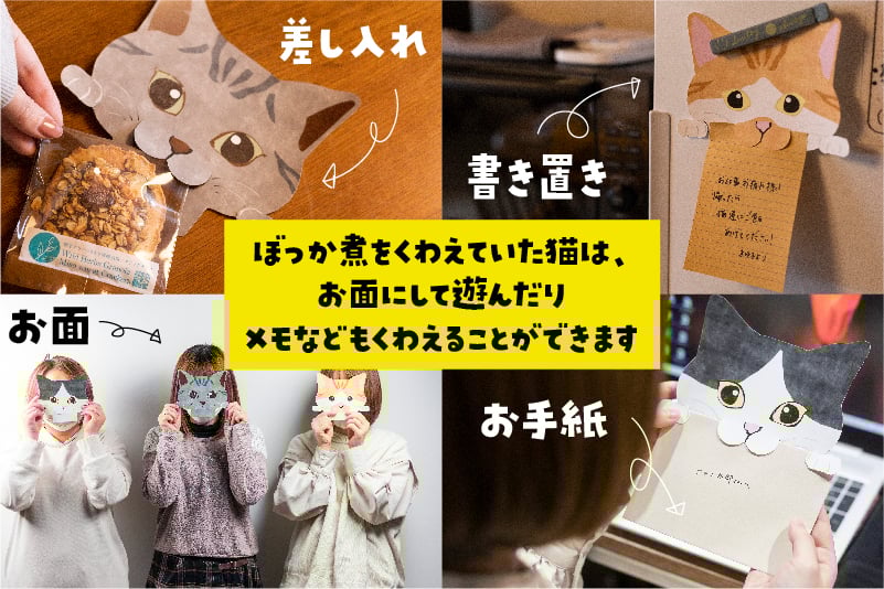 ぼっか煮をくわえていた猫は、メモなどもくわえることができます。