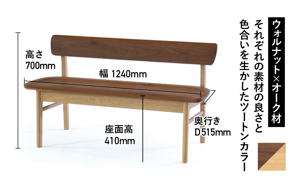 国産家具 ベンチ ダイニングベンチ 飛騨家具 飛騨の家具 2人掛け背付ベンチ(W124) 飛騨の家具 イバタインテリア 品番:BC-K282(124)