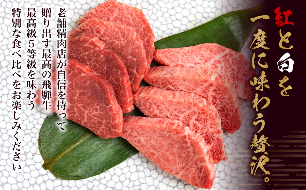 ヒレの赤身、霜降りを楽しむ贅沢食べ比べ! 飛騨牛 5等級 紅白焼肉食べ比べ 古里精肉店 A5 牛肉 肉 フィレミニヨン テート ヒレ フィレ 国産 BBQ ブランド牛 お取り寄せグルメ ギフト