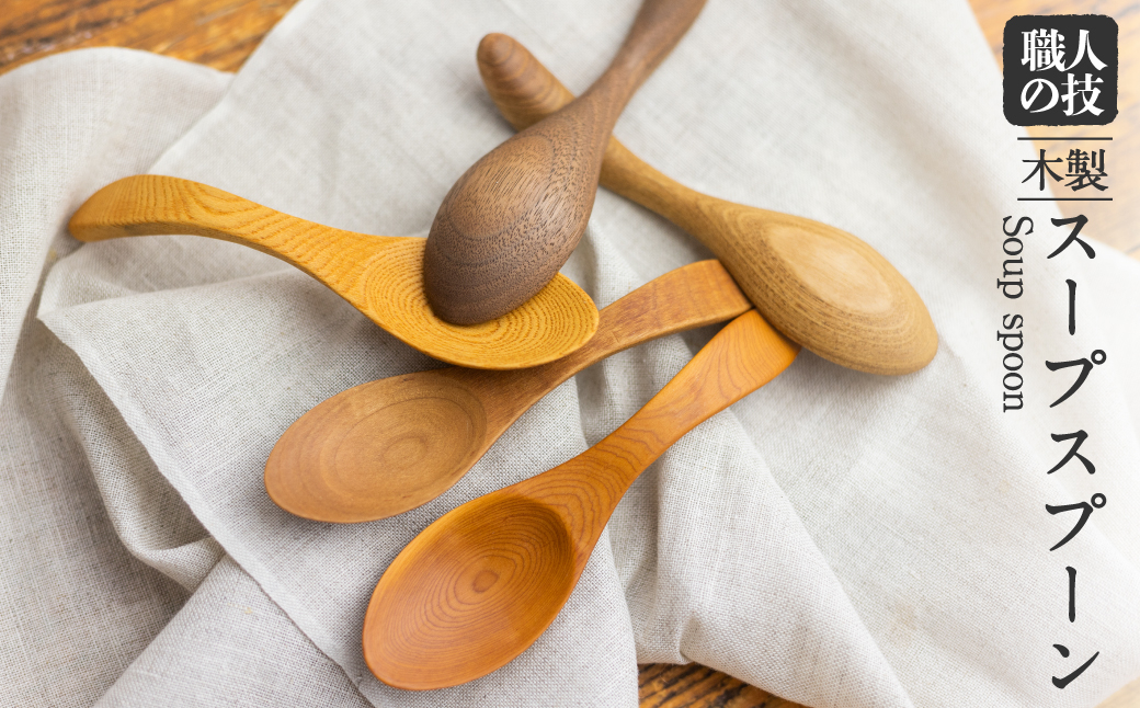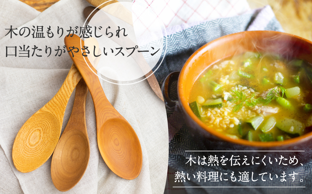 木の温もりを感じるスープスプーン 一位一刀彫師が制作したスープスプーン カトラリー 手作り 木工品 木製 5種から選べる