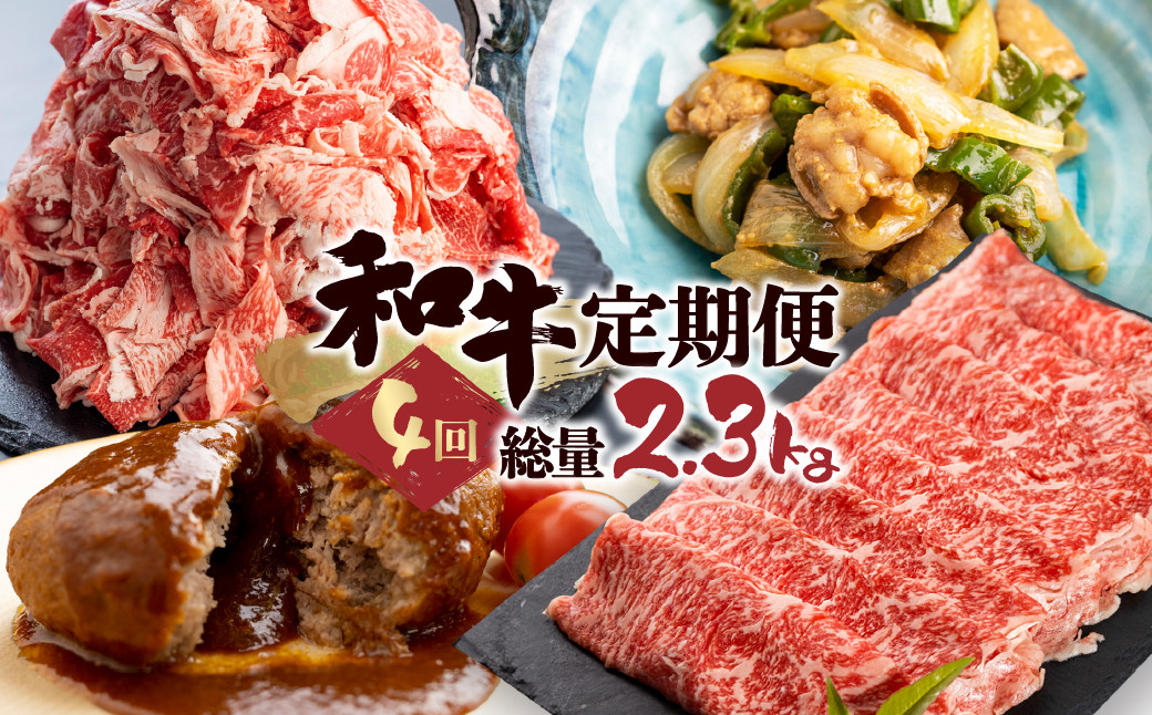 「和牛定期便」定期便 4回 お楽しみ 牛肉 切落し 切り落とし ホルモン もつ 焼肉 ハンバーグ レトルト しゃぶしゃぶ 個包装 国産和牛 総重量2.3kg 定期便 肉