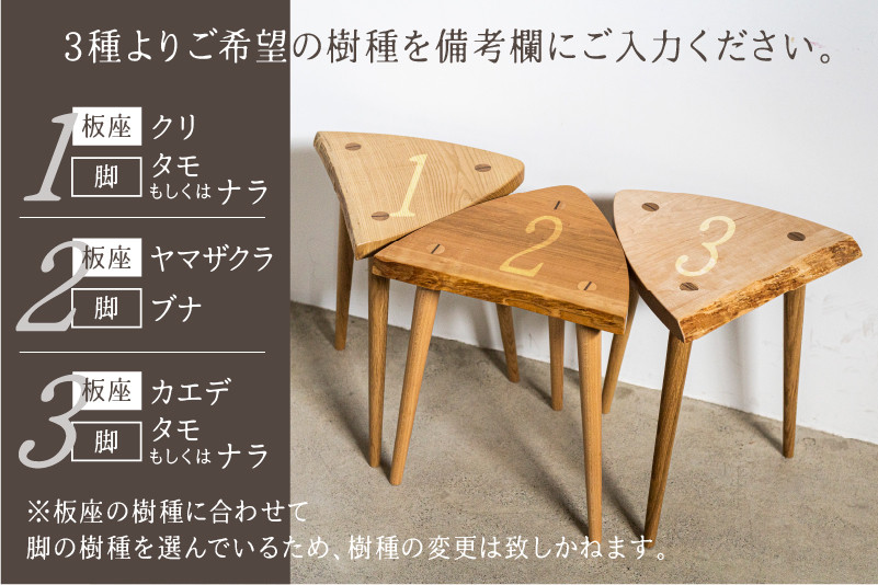 飛騨の職人が1点ずつ手作業にて組み上げた高品質なスツール スツール 木製 天然木 おしゃれ 北欧 耳付き一枚板スツール おしゃれ 無垢材 手作り イス 椅子 チェア チェアー 花台 サイドテーブル