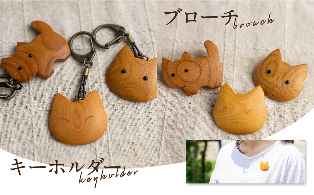 一位一刀彫師が制作した天然木のアクセサリー 猫のアクセサリー 木製 天然木 一位一刀彫師 ペンダント キーホルダー ブローチ 女性 子供 猫グッズ ネコ