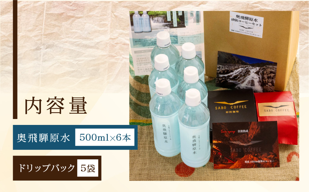 飛騨の美味しい水とコーヒーのセット 天然水 ミネラルウォーター 【ふるさと納税】奥飛騨焙煎 砂防コーヒー 奥飛騨原水500ml セット 奥飛騨原水500ml×6本 ドリップコーヒー 5個飛騨の美味しい水 ミネラルウォーター コーヒー [Q2499]