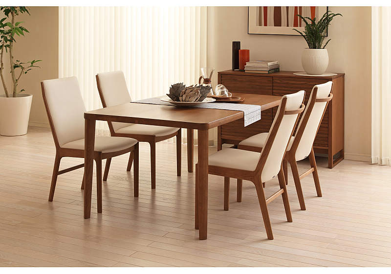 《脚間広々、すみずみまできれいなデザイン》 脚が外いっぱいにあるので、安定感も高く、脚間が広く機能的。 脚と天板の接合部には高度な加工を施し、細部まで美しいデザインです。 《すりキズ・熱などに強いシリコンアクリル塗装 (硬度3~4H)》 日にも焼けにくく、メンテナンスも安心です。 【受付後の流れ】 1.指定したお届け先にお礼品ごとの塗装色サンプル、張地サンプルおよびカタログ資料などをお送りします。 ※カタログ資料は寄附完了後2週間~1ヶ月程度で送られます。 2.その中の「商品確認書」にご希望の塗装色・張地色をご記入の上、ご返送ください。 3.「商品確認書」のご希望内容にてお電話でお届け日、お届け先等のお打合せを行います。 4.お礼品をお届けし、組み立て・設置を行います。 ※商品確認書返送後1~2ヵ月程度でお届けします。 ※6ヵ月以上先を指定した発送は受付できません。商品確認書到着後は、速やかにご返送ください。 ■提供事業者:株式会社エーアイディー(カリモク特約店)