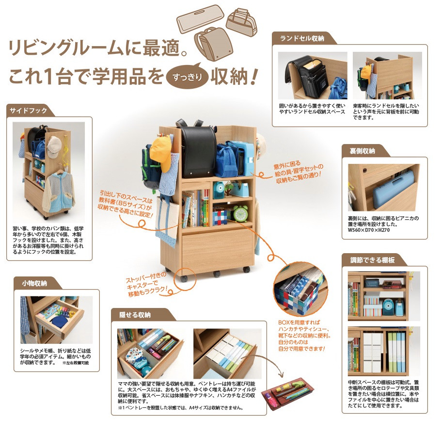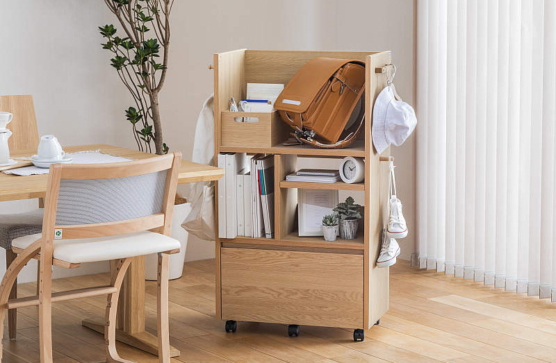 リビング学習時期のランドセルラックから、大人用のシェルフラックまで場所も使い方も思いのまま。