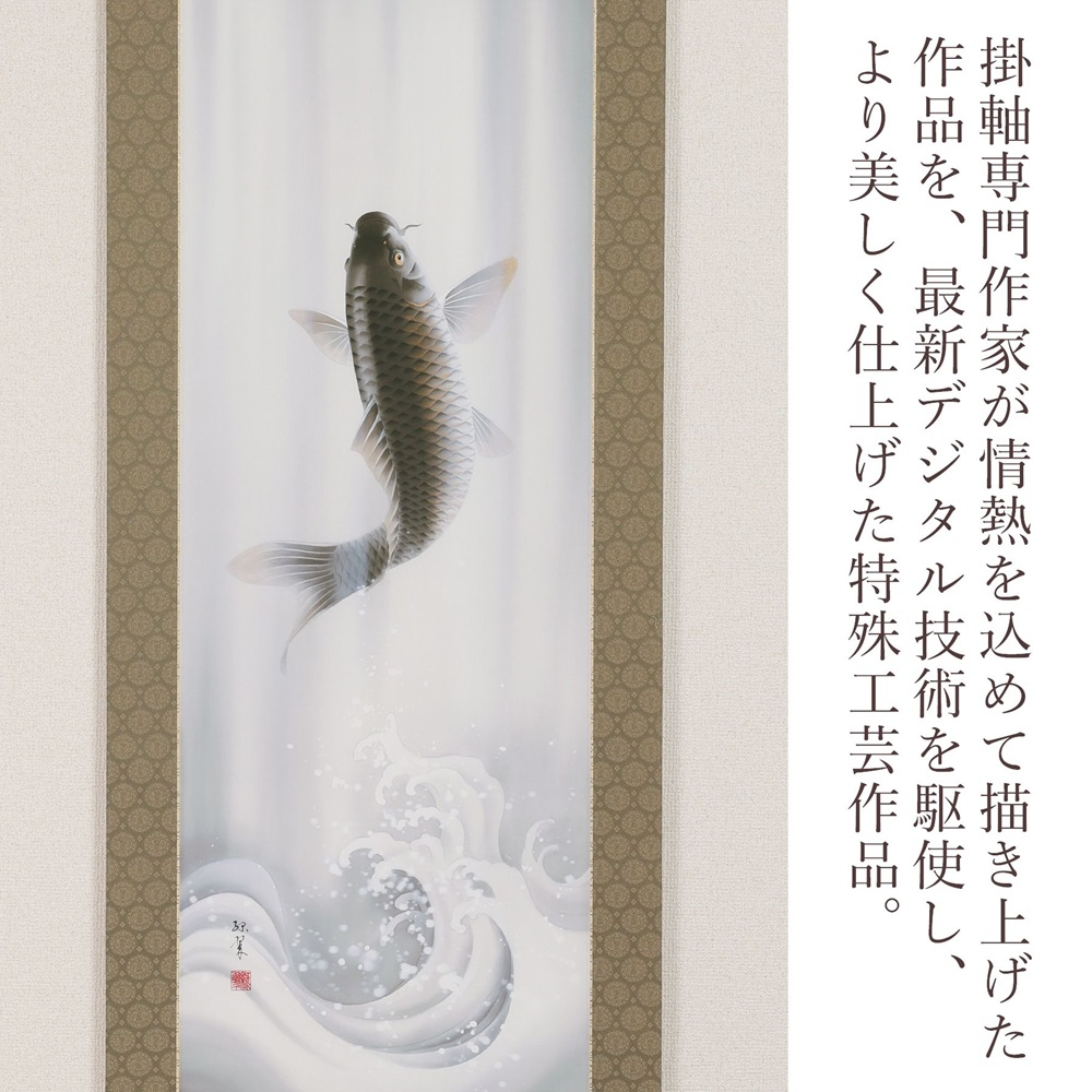 掛け軸「龍門」萩原緑翠 尺五立 掛軸 [1233]