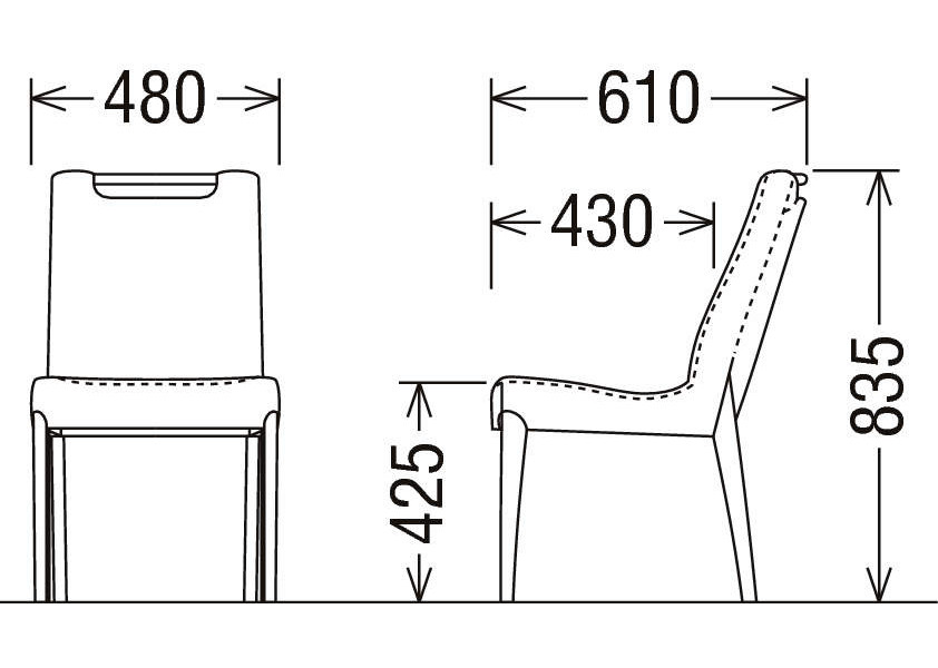 | 容量 | ■品番:CE3215(食堂椅子) ■寸法:幅480、奥行610、高さ835、座高425 ■主材:ブナ ■張地:合成皮革(マニエラ) ■クッション:ポリエステルメッシュ・ウレタンフォーム ★塗装色は2色、張地は10色から選べます。 |