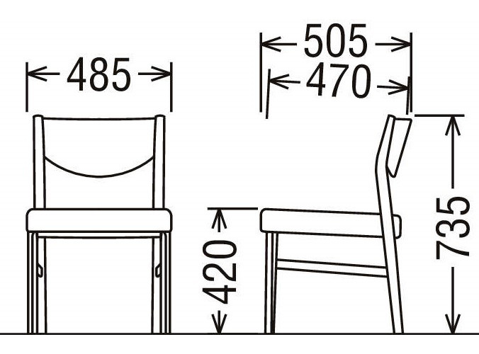 | 容量 | ■品番:CW4315(食堂椅子) ■寸法:幅485、奥行505、高さ735、座高420 ■主材:オーク ■張地:合成皮革(マニエラ) ■クッション:ポリエステルメッシュ・ウレタンフォーム ★塗装色は4色、張地は10色から選べます。 |