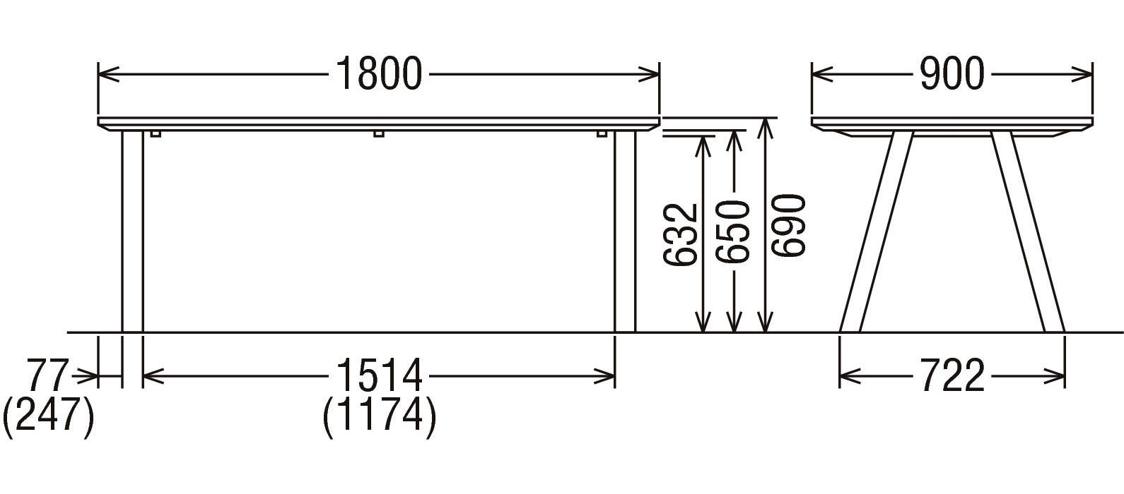 4本脚タイプでも、脚先が天板より少しひかえているため、ベンチとのセットでも出入りがしやすい形状です。