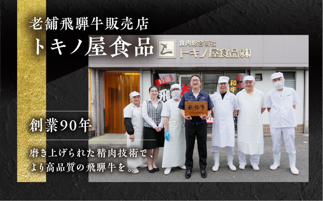飛騨牛販売指定店であるトキノ屋食品では、最上級の肉質等級A5ランクを中心とした高品質の飛騨牛を提供。