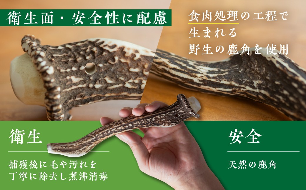 鹿角は煮沸消毒を行い、切断面は丁寧に研磨して安全性を確保。